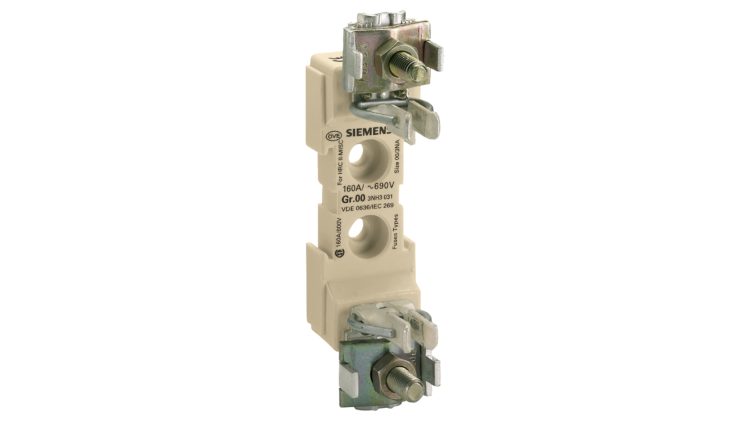 ОСНОВАНИЕ ПЛАВКОЙ ВСТАВКИ Uном.=660В, Iном.=160А, ТИПОРАЗМЕР 00, 1-ПОЛЮСН. ШТЫРЕВОЙ ЗАЖИМ, 2,2-50 КВ.MM |