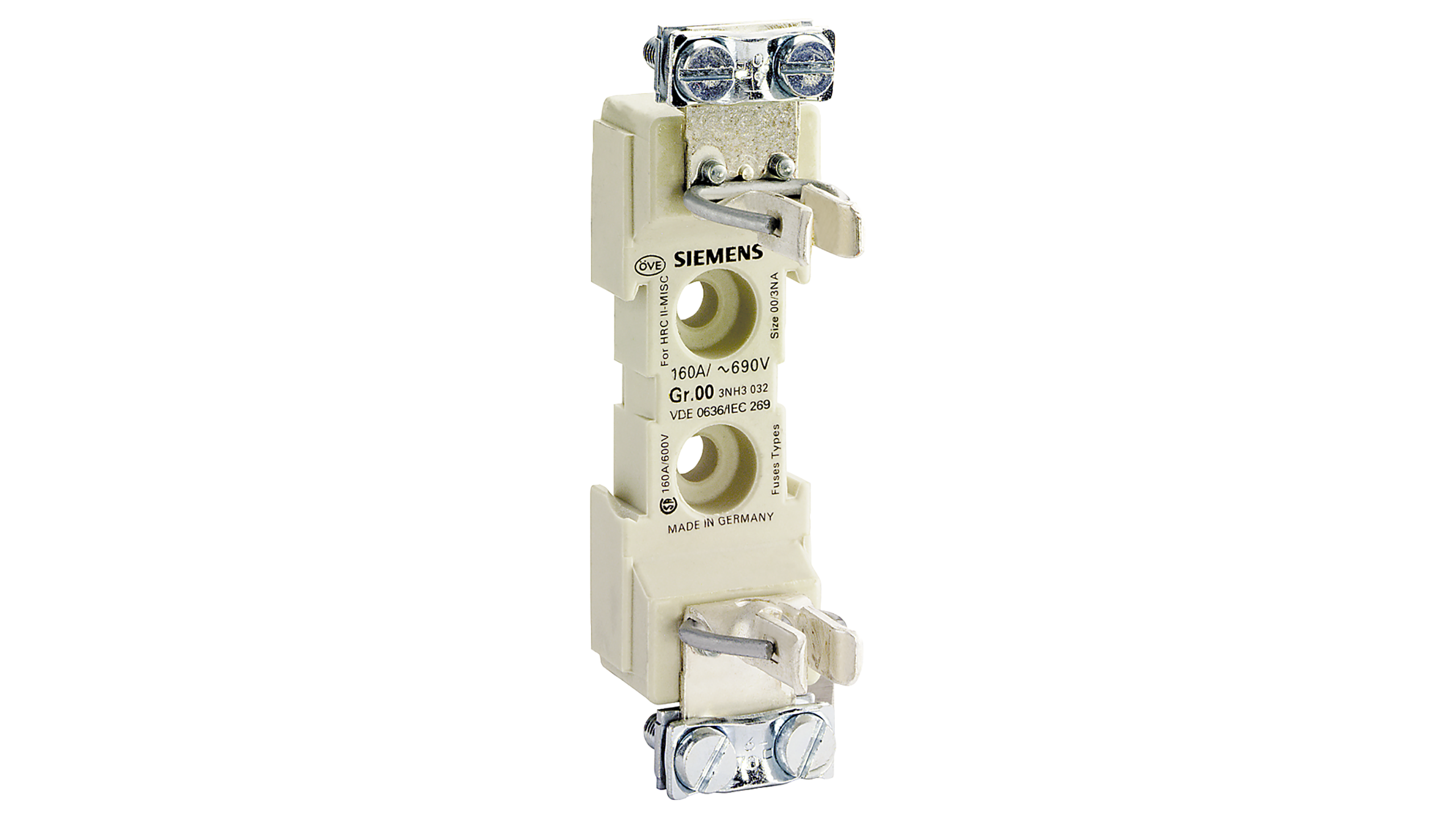 ОСНОВАНИЕ ПЛАВКОЙ ВСТАВКИ Uном.=660В, Iном.=160А, ТИПОРАЗМЕР 00, 1-ПОЛЮСН. ПЕТЛЕВОЙ ЗАЖИМ, 6X70 КВ.MM