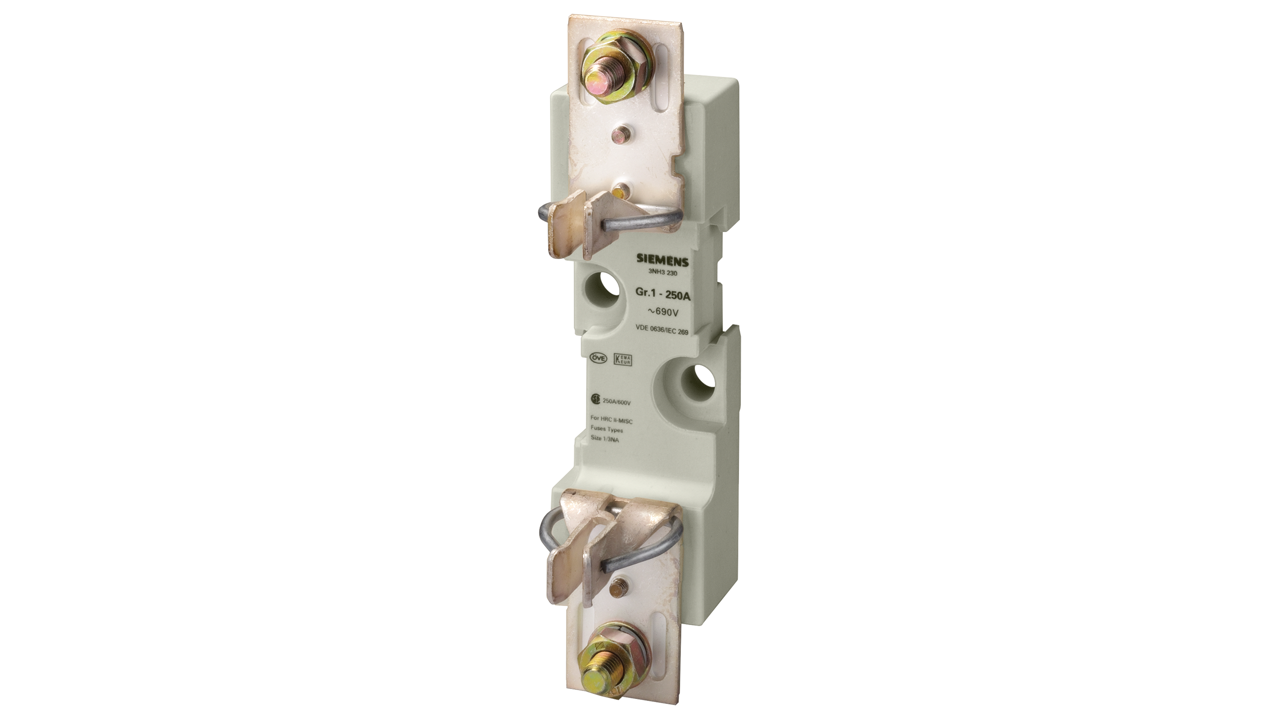 ОСНОВАНИЕ ПЛАВКОЙ ВСТАВКИ Uном.=660В, Iном.=250А, ТИПОРАЗМЕР 1, 1-ПОЛЮСН. ПЛОСКИЙ ЗАЖИМ |
